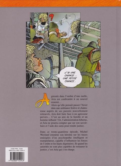 Paysage enneigé sous la pleine lune, c'est ce soir la fête du solstice d'hiver dans la cité. Aria, la pétulante guerrière blonde créée par Michel Weyland, se promène dans cette ambiance de fête quand un homme étrange la pique à l'aide d'un dard empoisonné et l'entraîne à l'écart pour la rouer de coups. Sauvée grâce à ses krylfes, elle va découvrir que son agresseur est un avocat puissant et pervers auquel semble liée de très près la disparition de son oncle et de ses cousins. Dénué de tout scrupule, il est sur le point de s'approprier le trésor familial... Résolue à le contrer avec l'aide de sa mère et de la femme de son oncle disparu, il va lui falloir agir vite. Au risque de devoir se jeter dans la gueule du loup...