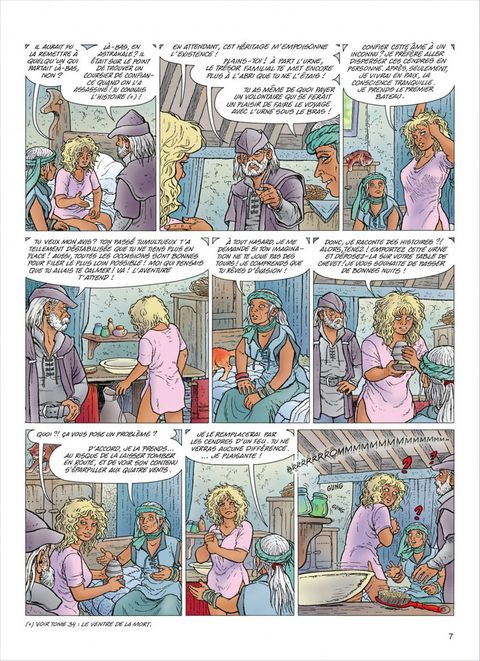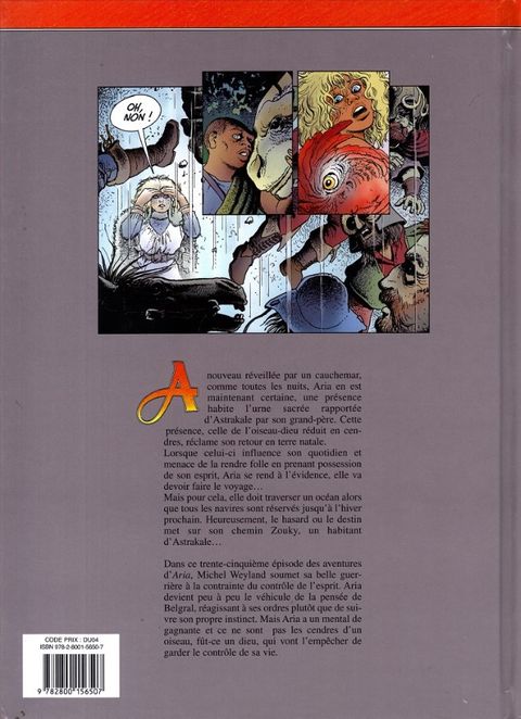 Pour Aria, la pétulante guerrière blonde créée par Michel Weyland, les nuits sont devenues un enfer ! Elle en est sûre et certaine : une présence habite l'urne sacrée rapportée d'Astrakale par son grand-père. Un esprit qui la hante et la harcèle chaque nuit, demandant toujours la même chose : qu'on le ramène chez lui et qu'on y répande ses cendres. Inquiète à l'idée de confier cette âme exilée à n'importe qui, et soucieuse de retrouver la paix et le sommeil, elle décide d'entreprendre le voyage. Mais tous les bateaux en partance étant complets, il lui faut trouver un moyen de transport...