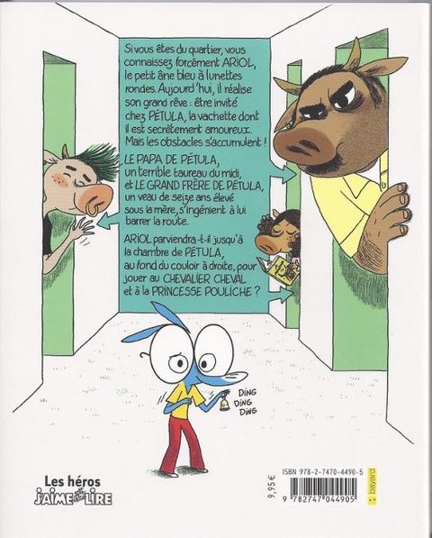 Ariol réalise son rêve : il est invité chez Pétula, la vachette dont il est secrètement amoureux. Mais les obstacles s'accumulent : le papa de Pétula, un terrible taureau du midi, et son grand frère, un veau de 16 ans, s'ingénient à lui barrer la route. Ariol parviendra-t-il jusqu'à la chambre de Pétula, au fond du couloir à droite, pour jouer au chevalier et à la princesse ?