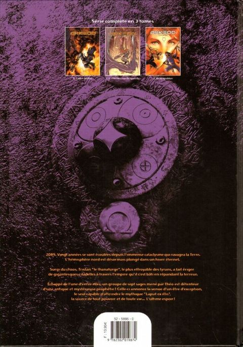 2089, le monde déjà au bord du gouffre, est prêt à basculer dans le chaos. À moins que ne soit découvert le « Lapsit ex illis », l'artefact au pouvoir absolu annoncé depuis des millénaires par les gardiens d'Arkeod, la confrérie la plus hermétique qui soit. Seul un homme aux yeux vairons, comme le sont Adam et Tristan ces jumeaux que tout oppose, sera capable d'accéder à la source prophétique. Mais entre eux se trouve Dana, une femme au rôle aussi déterminant qu'inconnu jusqu'alors.