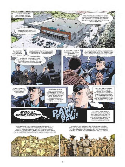Le parcours du lieutenant-colonel A. Beltrame (1973-2018) est retracé en bande dessinée. Tué lors de l'attaque terroriste dans un Super U à Trèbes, il n'a pas hésité à risquer sa vie pour sauver les otages. Son héritage familial, son enfance, sa relation conflictuelle avec son père, sa foi sont également abordés.