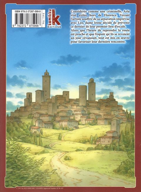 Florence. Début du XVIe siècle. Dans ce berceau de la Renaissance, qui vit l'art s'épanouir dans toute sa splendeur, une jeune aristocrate prénommée Arte rêve de devenir artiste peintre et aspire à entrer en apprentissage dans un des nombreux ateliers de la ville... Hélas ! Cette époque de foisonnement culturel était aussi celle de la misogynie, et il n'était pas concevable qu'une jeune femme ambitionne de vivre de son art et de son travail. Les nombreux obstacles qui se dresseront sur le chemin d'Arte auront-ils raison de la folle énergie de cette aristo déjantée ?