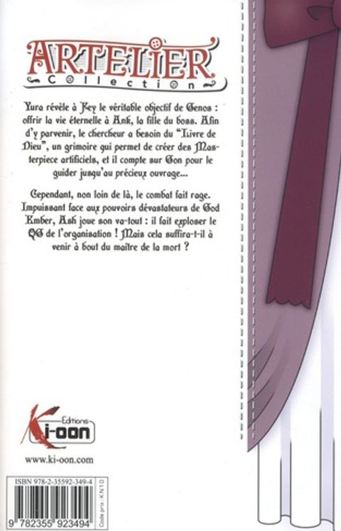 Yura révèle à Fey le véritable objecfif de Genos : offrir la vie éternelle à Ank, la fille du boss. Afin d'y parvenir, le chercheur a besoin du ""Livre de Dieu"", un grimoire gui permet de créer des Masterpiece artificiels, et il compte sur Gon pour le guider jusqu'au précieux ouvrage... cependant, non loin de là, le combat fait rage. Impuissant face aux pouvoirs dévastateurs de God Ember, Ash joue son va-tout : il fait exploser le QG de l'organisation ! Mais cela suffira-t-il à venir à bout du maître de la mort ?