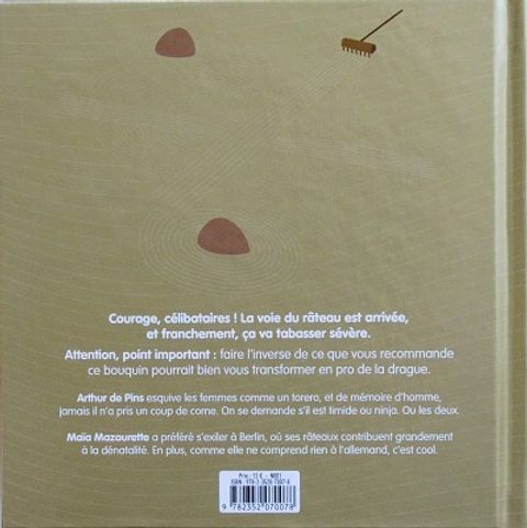 Courage, célibataires ! La voie du râteau est arrivée, et franchement, ça va tabasser sévère. Attention, point important : faire l'inverse de ce que vous recommande ce bouquin pourrait bien vous transformer en pro de la drague. Arthur de Pins esquive les femmes comme un torero, et de mémoire d'homme, jamais il n'a pris un coup de corne. On se demande s'il est timide ou ninja. Ou les deux. Mafia Mazaurette a préféré s'exiler à Berlin, où ses râteaux contribuent grandement à la dénatalité. En plus, comme elle ne comprend rien à l'allemand, c'est cool.