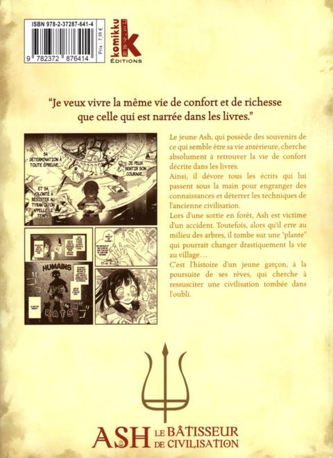 Le jeune Ash, qui possède des souvenirs de ce qui semble être sa vie antérieure, cherche absolument à retrouver la vie de confort décrite dans les livres. Ainsi, il dévore tous les écrits qui lui passent sous la main pour engranger des connaissances et déterrer les techniques de l’ancienne civilisation. Lors d’une sortie en forêt, Ash est victime d’un accident. Toutefois, alors qu’il erre au milieu des arbres, il tombe sur une “plante” qui pourrait changer drastiquement la vie au village… C’est l’histoire d’un jeune garçon, à la poursuite de ses rêves, qui cherche à ressusciter une civilisation tombée dans l’oubli.