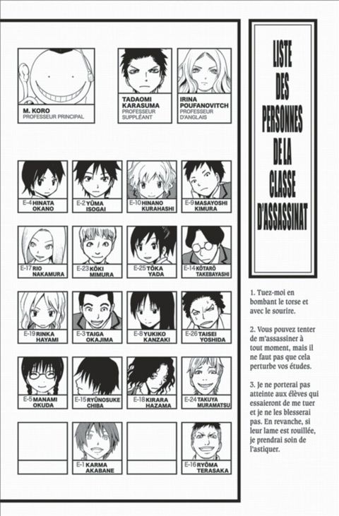 La Lune est détruite à 70 %, la Terre est en sursis ! La menace vient d'un extraterrestre au physique de poulpe, aux capacités hors du commun et réputé indestructible !! Toutefois, comme il trouve que les Terriens sont de trop piètres adversaires, il décide de former la plus mauvaise classe d'une école aux techniques d'assassinat : à la fin de l'année, Nagisa et ses camarades de classe devront parvenir à tuer leur professeur !!