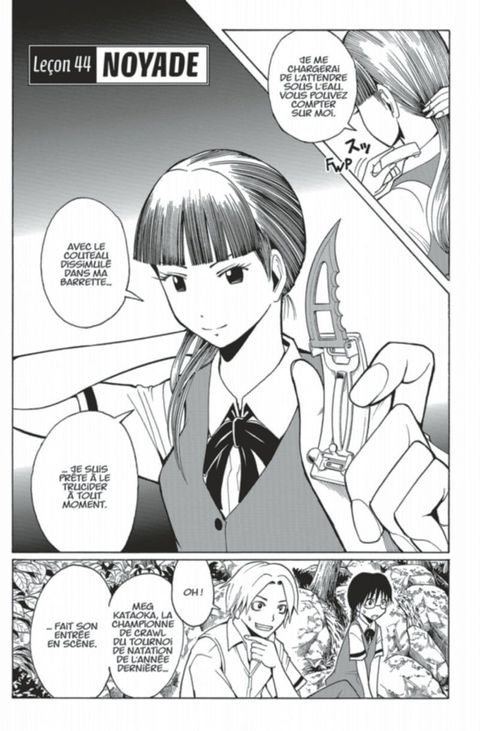 Un nouveau plan machiavélique pour tuer Koro sensei se prépare dans la classe E : se basant sur l'hypothèse que leur professeur n'est pas forcément à l'aise dans l'eau, les élèves veulent profiter de cette faiblesse pour tenter une nouvelle fois de l'achever. Cette nouvelle stratégie est menée de main de maître par Kataoka, qui est bien trop douée par être arrivée dans la classe par hasard ; quel secret cache-t-elle donc ?
