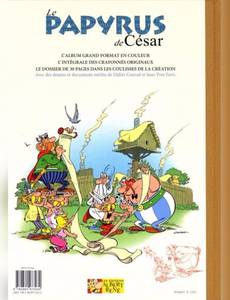 Cette édition en grand format (26 x 36,5 cm) du nouvel album LE PAPYRUS DE CESAR comprend 128 pages, avec dos carré toilé et tranchefile. Deux types de papier différents sont utilisés pour réserver le plus bel écrin à une grande variété de créations graphiques. Au programme : l'album en couleur, l'intégrale des crayonnés originaux, et un dossier de 33 pages permettant de découvrir les coulisses de la création du nouvel album avec de nombreux dessins et documents de travail inédits signés Jean-Yves Ferri et Didier Conrad.
