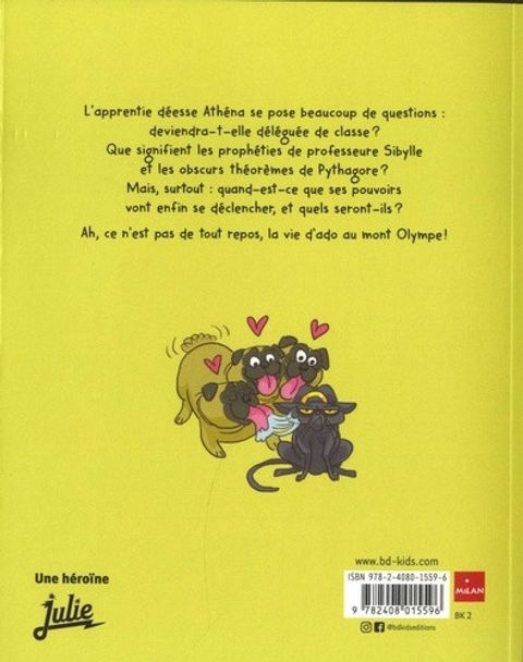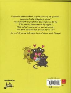 Aphrodite était-elle une élève populaire ? Arès se bagarrait-il dans la cour ? Hermès était-il souvent en retard ? Est-ce que le visage de Gaïa bourgeonnait ? Héphaïstos faisait-il le mur ? Osiris répondait-il à ses parents ? Et, surtout : quand est-ce qu'apparaîtront enfin les pouvoirs magiques d'Athéna, et quels seront-ils ? Autant de questions légendaires enfin résolues dans les nouvelles aventures de l'apprentie déesse et de ses amis, élèves au collège du mont Olympe. Rejoignez Frédéric Bagères, Sybilline et Marie Voyelle dans les cieux pour une balade au panthéon des dieux grecs en pleine adolescence, et découvrez la mythologie comme vous ne l'avez jamais lue. Humour, aventure, amitiés, magie et références à foison, une chose est sûre : vous n'aurez plus envie d'en redescendre !