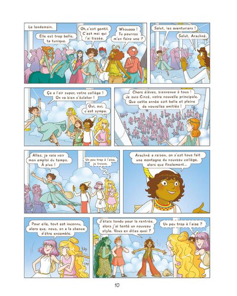 De retour au collège du Mont Olympe tout juste reconstruit, Athéna et ses amis découvrent avec surprise l'étendue des changements : une nouvelle cantine, de super salles de classes... et une nouvelle élève, Arachnée. Chaleureuse et spontanée, la jeune fille aux six bras trouve rapidement sa place au sein des élèves : elle est ainsi rapidement élue déléguée, et sa bonne humeur fait l'unanimité au sein de ses camarades. ... Enfin, sauf Aphrodite, qui n'a pas tellement l'habitude qu'on lui vole la vedette ! Vexée, elle rejette immédiatement la nouvelle venue et dénigre sans arrêt chacun de ses faits et gestes.Le petit groupe, Athéna la première, se retrouve en première ligne de cette dispute qui semble ne jamais vouloir finir. Si l'affreux Thor, la vilaine Pythie ou les nombreuses plaies d'Égypte n'avaient pas réussi à entamer l'amitié de ce groupe d'apprentis dieux et déesses, le conflit entre Arachnée et Aphrodite semble bien parti pour la ruiner. Et, pour une fois, les pouvoirs des uns et des autres ne seront pas d'une grande utilité.