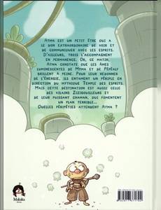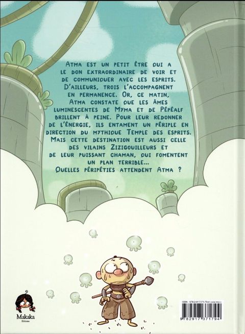Atma est un être à part car il possède le don étrange de voir et de communiquer avec les esprits. D'ailleurs, trois esprits l'accompagnent quotidiennement : celui de l'homme à qui appartenait son sabre, et ceux de ses grands-parents. Mais ce matin, au réveil, Atma constate que les âmes luminescentes de Myma et de Pépéalf brillent à peine. Pour leur redonner de l'énergie, ils entament un périple en direction du Temple des esprits. En parallèle, le terrible Chaman des Zizigouilleurs fomente un terrible plan : Construire une puissante machine de guerre qui fonctionne à l'aide d'âmes. Pour en trouver, direction le Temple des esprits !