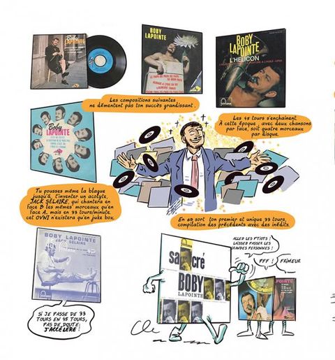 Boby Lapointe, auteur-compositeur-interprète disparu en 1972, il a écrit une cinquantaine de chansons et il a eu mille vies, mais parti trop tôt l'année de ces 50 ans ! Inventeur, créateur, passionné de mathématiques, poète, comédien, Boby a traversé la vie à cent à l'heure guidé avant tout par ses sentiments et sa fantaisie. Imprégné d'humour, d'espièglerie, de dérision et d'irrévérence, Boby s'amusait avec son image d'où l'envie de retracer des moments de sa vie en bande dessinée. Gaston, dessinateur, amateur de musique et de chanson, s'est lancé dans l'aventure. Après une plongée dans les archives familiales, les photos, les nombreux ouvrages et témoignages, il nous restitue un carnet de voyage. Des invités de renom ponctuent également ce récit en posant leur regard sur cet artiste si particulier. Préparez-vous «Chez Lapointe, on s'pointe et on pointe !»
