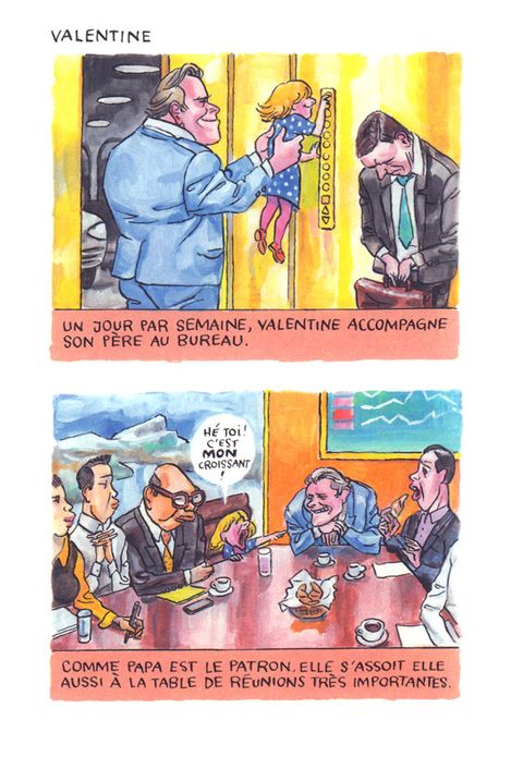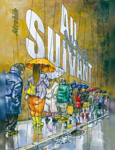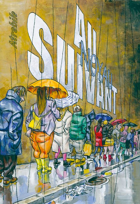 Il faut le savoir : Noyau est un salaud. Ne l'invitez pas : une fois chez vous, il s'assoira dans un coin, ne pipera pas un mot, mais observera vos moindres gestes d'un oeil aussi placide que perçant. Puis une fois rentré chez lui, il sortira ses plus belles gouaches, s'armera d'un pinceau bien trop usé, et fera de vous ou vos proches un portrait aussi beau (dans la forme) qu'acide (dans le fond). On vous prévient : Noyau est un sale type. On le voit bien dans ce livre, Au suivant, composé d'une suite de portraits qui se déploient systématiquement sur deux pages, comme celui de Melvin, qui décide de se passer de tout, mais pas de l'aide financière de ses parents ; Nino, hipster barbu, qui prend tellement de soin à préparer son expresso que l'heure de l'apéro arrive avant le première tasse ; ou Odile, qui ne partage pas ses théories complotistes avec son fils, car comment savoir si celui-ci n'est pas un extra-terrestre ? ... Méfiez-vous : Noyau est un sale type. Pourtant, par le passé, certains éditeurs lui ont accordé leur confiance, à l'instar de Frédéric Pajak, qui, au sein des Cahiers Dessinés, a publié ses précédents livres, comme Dessins au doigt, L'Art de Vivre ou Les Doigts sales ; ou encore Actes Sud, chez qui il a commis l'Ouf, en compagnie d'Anna Sommer. Des livres tous magnifiques, et c'est peut-être là que réside le mystère Noyau : comment un être aussi malfaisant et dangereux peut être également un dessinateur aussi génial ? Bon, en tout cas on vous aura averti, Noyau est méchant, comme son livre. Méchant et même féroce envers ce triste monde et ceux qui le peuplent, on pourrait même dire carrément cinglant et politiquement peu correct, mais il faut bien l'admettre : à l'arrivée c'est bon, et ça fait du bien.