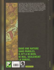 Dans une nature sans paroles, il n’y a ni bien ni mal. Seulement la survie. Ils ont régné sur la terre, dans les eaux, et dans les airs durant des millions d’années. Depuis la découverte des premiers fossiles, ils ont enflammé notre imaginaire. Parmi ses fous de dinosaures, on compte Ricardo Delgado, artiste et storyboarder de génie. Grâce à l'inspiration cinématographique et à la passion méticuleuse d'un maître graphique, découvrez la sauvagerie, la cruauté, et la beauté des créatures qui ont peuplé l’Afrique à l’ère du crétacé. Sans dialogues, sans un mot, Ricardo Delgado raconte les dinosaures.