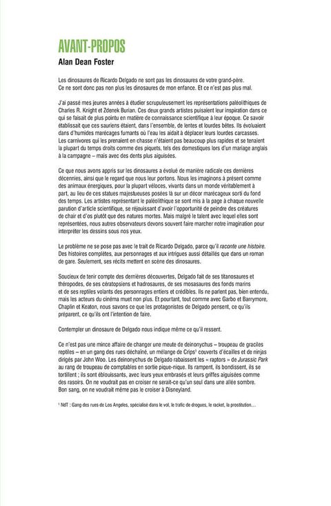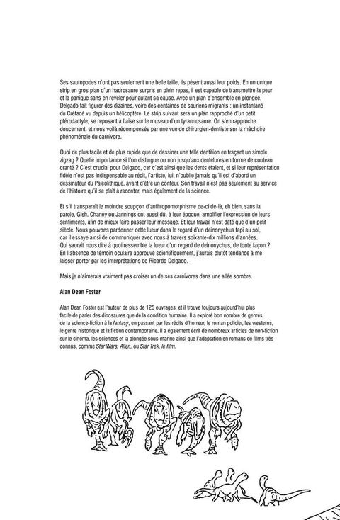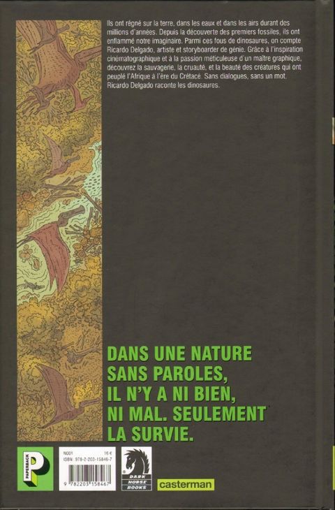 Dans une nature sans paroles, il n’y a ni bien ni mal. Seulement la survie. Ils ont régné sur la terre, dans les eaux, et dans les airs durant des millions d’années. Depuis la découverte des premiers fossiles, ils ont enflammé notre imaginaire. Parmi ses fous de dinosaures, on compte Ricardo Delgado, artiste et storyboarder de génie. Grâce à l'inspiration cinématographique et à la passion méticuleuse d'un maître graphique, découvrez la sauvagerie, la cruauté, et la beauté des créatures qui ont peuplé l’Afrique à l’ère du crétacé. Sans dialogues, sans un mot, Ricardo Delgado raconte les dinosaures.