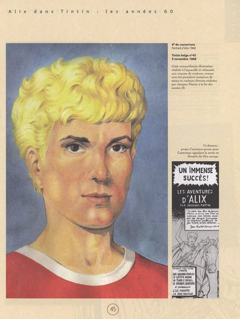 Lorsque Jacques Martin arrive à Bruxelles, le 2 février 1946, le principal de son activité consiste en des travaux publicitaires et des bandes dessinées de style plutôt comique (Le hibou gris, Oeil de perdrix, etc). Il apprend néanmoins qu'une nouvelle publication destinée à la jeunesse est prévue. Il s'agit du Journal de Tintin. Jacques Martin, dont les dessins ont été repérés, par cette équipe est invité à préparer un sujet par Raymond LEBLANC, le directeur de la future publication. Pour la première fois, il propose le personnage d'ALIX et dessine ainsi la première page d'Alix l'intrépide en couleurs directes...