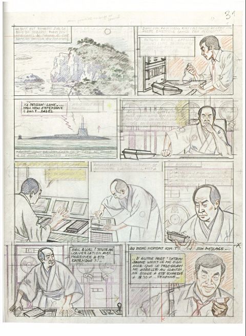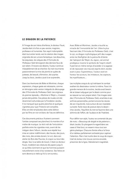 Pour le plus grand plaisir des admirateurs du travail d’Edgar P. Jacobs, une édition intégrale du découpage graphique des 3 Formules du Professeur Satō paraîtra en fin d’année ! De quoi se régaler en découvrant son travail de recherche scénaristique, minutieux et précis…