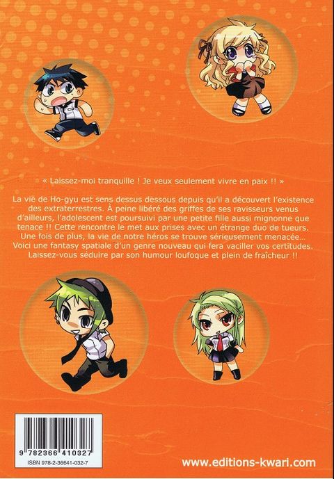 Depuis qu'il est au courant de la présence des extra-terrestres sur Terre, la vie d'Hokyu est complètement chamboulée. A peine libéré d'un kidnapping par des extra-terrestres, il a le droit à une visite d'une fille toute mignonne qui ne le lâche plus d'une semelle. De plus, un couple à la recherche de la fille en question fait son apparition et le menace de mort !!