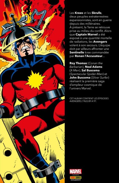 Découvrez l'une des sagas les plus marquantes dans l'histoire des Avengers : la guerre opposant les Krees aux Skrulls. Cette aventure parue dans les pages d'Avengers dans les années 70 est un incontournable de la Maison des Idées. Quand un conflit d'envergure cosmique éclate entre les impitoyables Krees et les Skrulls métamorphes, la Terre se retrouve prise entre deux feux. Les Avengers doivent alors faire l'impossible pour préserver l'humanité. Le "traître" Captain Marvel et Rick Jones sont peut-être la clé pour éviter un désastre annoncé... Contient les épisodes US The Avengers (1963) #89-97.