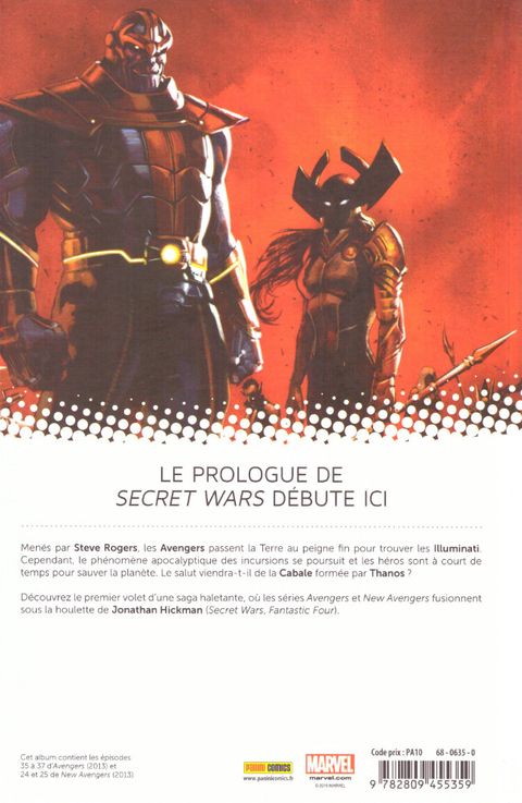 Les Avengers et le S.H.I.E.L.D., menés par Steve Rogers, affrontent les Illuminati (l'équipe de la série New Avengers) dans un duel fratricide. Alors que la fracture entre les deux groupes semble irrémédiable, c'est la Cabale de Thanos qui lutte pour empêcher l'apocalypse. (Contient les épisodes US New Avengers (2013) 24-25 et Avengers (2013) 35-37, publiés précédemment dans les revues AVENGERS (V4) 22-24)