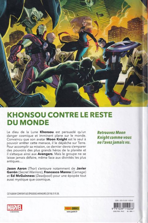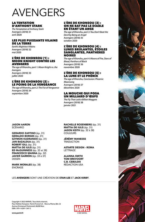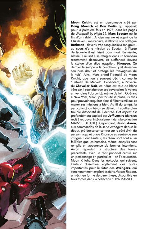 Tony Stark est piégé un million d'années dans le passé, et personne n'est au courant ! Iron Man va apprendre bien des choses sur les Avengers et sur une terrible menace qui plane sur eux, celle de Méphisto ! Il n'est pas le seul à craindre le Seigneur des Enfers, le Dieu Khonshu est prêt à tout pour empêcher son ascension, y compris à abattre tous les Avengers. Mais son disciple Moon Knight est-il de taille ? Jason Aaron (Thor) continue de tisser une de ces trames dont il a le secret, s'étendant sur plusieurs années. La longue saga proposée ici place Méphisto comme l'un des plus terribles adversaires des Avengers, et donne la part belle à Moon Knight, qui a explosé dans la série Disney+ !