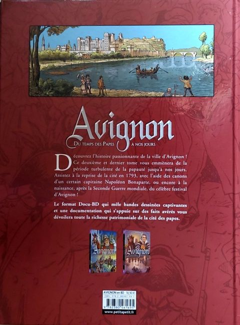 Découvrez la ville d’Avignon avec un Docu-BD passionnant ! Ce deuxième et dernier tome retrace son histoire, des turbulences de la papauté jusqu’à nos jours, en passant par la venue du capitaine Napoléon Bonaparte ou encore la naissance du fameux festival d’Avignon.Grâce à une documentation riche qui s’appuie sur des faits avérés, des reconstitutions des lieux et des archives historiques, découvrez comment Avignon est devenue une cité d’exception.