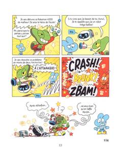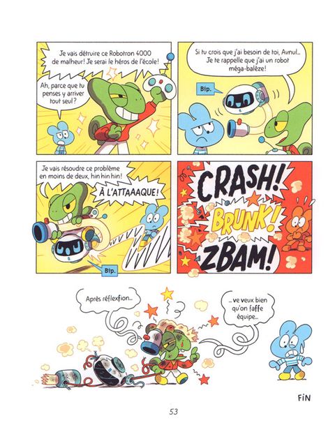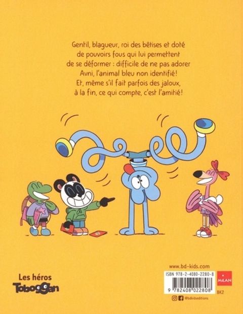 Gentil, blagueur, roi des bêtises, et surtout doté de pouvoirs fous qui lui permettent de se métamorphoser et d'accomplir des exploits incroyables : si on ne sait pas bien quel animal est Avni, ce qui est sûr, c'est qu'il a tout pour être le héros préféré des petits lecteurs ! D'ailleurs, dans son école, c'est bien lui la star, et tout le monde l'adore ! Tous... sauf peut-être Léon, le caméléon. Avant l'arrivée d'Avni, c'était lui, le roi de la cour de récré : il savait changer de couleurs et devenir invisible ! Alors, depuis, il rumine... mais aujourd'hui, les choses vont de nouveau changer : maintenant qu'il possède un Robotron 2 000, un robot capable lui aussi de se métamorphoser et d'accomplir des exploits incroyables, il va redevenir le plus populaire ! Avni supportera-t-il de ne plus être sur le devant de la scène ? Un nouveau tome des aventures du petit héros bleu qui aborde, comme toujours avec malice, humour et une bonne dose de transformations étonnantes, les problématiques et les émotions des enfants d'aujourd'hui dans des gags tendres et désopilants !