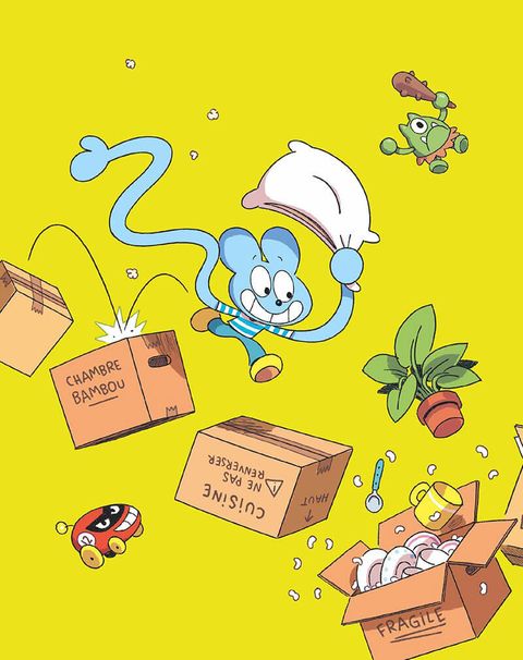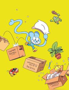 Avni n'est pas un écolier comme les autres : doté de pouvoirs exceptionnels, ce petit animal bleu est capable de se déformer à l'envi, de disparaître ou de se métamorphoser en un clin d'oeil ! Des caractéristiques incroyables qui font de lui sans conteste le maître des bêtises et la star de la cour de récré !On le croirait même imbattable, mais il y a malheureusement des soucis que ces pouvoirs ne peuvent pas régler : par exemple l'annonce du déménagement de Bambou, son meilleur ami de toujours ! Face à cette soudaine peine d'amitié, Avni est d'abord bien démuni... heureusement, notre héros a plus d'un tour dans son sac, et de l'imagination à revendre !Car qu'il s'agisse de faire tourner en bourrique les adultes, d'être le meilleur au cartes Monstrofun ou de garder près de lui son meilleur copain, une chose est sûre : avec Avni, la vie, ça déménage !