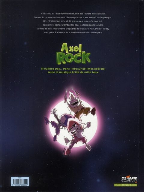 Axel, Dino et Teddy rêvent de devenir des rockers intersidéraux. Un soir, ils rencontrent un petit démon qui exauce leur souhait, enfin presque... Un entraînement ardu et de grandes épreuves s'annoncent : la route est semée d'embûches pour les trois jeunes rockers. Armés de leurs instruments crépitants de feu sacré. Axel, Dino et Teddy sont prêts à affronter leur destin d'aventuriers de l'espace.