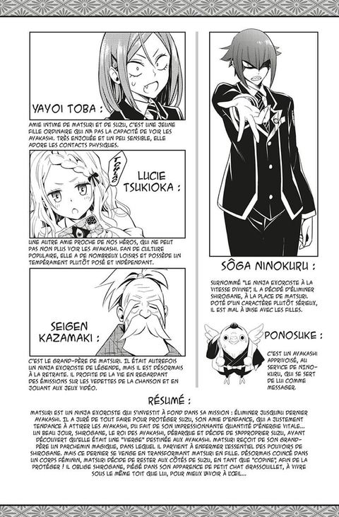 Le Japon regorge de mystérieux monstres appelés Ayakashi. Pour les exorciser et contrer la menace une organisation ninja s'est formée. Matsuri est un jeune ninja exorciste qui affronte régulièrement ces créatures et protège son amie d'enfance Suzu, qui possède elle aussi la capacité de les voir. Mais lorsqu'elle s'attache à un chat Ayakashi nommé Shirogane, les choses basculent.
