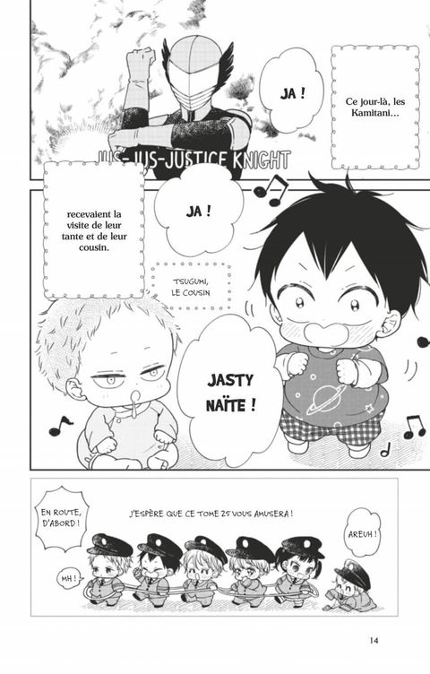 Taka a un choc quand sa tante lui assène qu'il chante faux… Il se met à détester les chansons ! Un ami de la directrice lui confie une perruche qui parle pendant ses vacances. Kotaro suit les instructions pour s'occuper d'elle, mais… Avec deux histoires bonus, dont “Midori et le lit de bébé”.