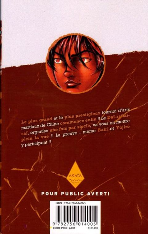 Baki est désormais en route pour la Chine ! Officiellement, il part pour guérir des poisons de Yanagi, mais en réalité, il participera au Daï-raïtaï-saï, le plus grand tournoi d'arts martiaux chinois ! Mais avant de combattre son père, Baki doit faire face aux Kaïô, les douze invincibles protecteurs de la Chine, ainsi qu'à Muhammad Ali junior, l'incroyable fils du plus grand boxeur du monde !