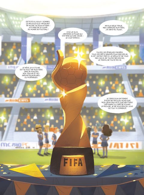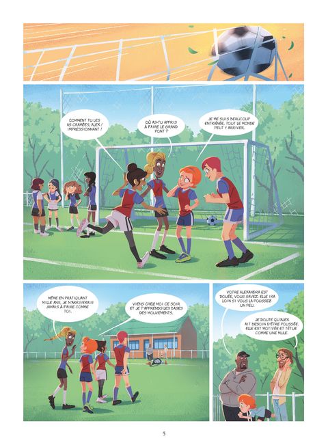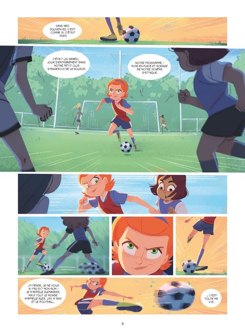 À la poursuite de ses rêvesÀ 11 ans, Alexandra est passionnée de football ! Douée pour cette discipline, elle rêve de devenir une grande championne ! Pour le moment, elle retrouve son équipe tous les samedis au club dans l’espoir de gagner face à leur rivales, « Les Belettes ». Mais alors qu’elle encadre un entraînement non loin de la route, la vie d’Alex bascule. Après un accident causé par une voiture, elle se réveille à l’hôpital, amputée d’une jambe. Abattue, Alex voit ses rêves se briser. C’est le début d’un long chemin. Rien ne sera plus jamais comme avant. À moins que… Peut-on jouer au foot avec une prothèse ? Soutenue par sa famille, ainsi que par son petit frère et ses camarades du club, Alex va se battre. Après le choc, les premières séances de rééducation vont lui permettre de faire ses premiers pas debout. Curieusement la rééducation, demande comme lors d’une compétition, un mental d’acier. Epaulée par l’équipe médicale, Alex va faire preuve d’une volonté à toute épreuve et se réapproprier, pas à pas, son corps et ses rêves…Message d’espoir, leçon de courage, Balle au pied, aborde le thème de la reconstruction de soi. Lylian (Méto, Les Géants…) trouve le ton juste pour traiter une question rarement abordée en jeunesse : comment vivre avec un handicap ? Avec cette série aux dessins solaires, une mise en scène à hauteur des personnages, nous entrons dans le quotidien d’Alex qui va trouver la force de poursuivre son rêve. Une histoire d’amitié, de résilience et d’espoir.
