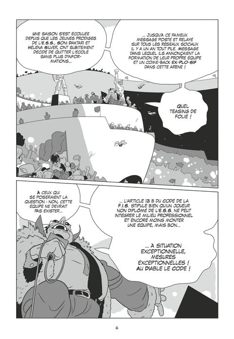Dans la cour des grands, tous les coups sont permis !De la campagne aux stades en folie, Héléna a fait du chemin. Douée pour la sioule, cette discipline ultra-brutale, elle a pourtant quitté son école de sport pour rejoindre l’équipe de Soni Daktari. Pour la première fois, des joueurs non diplômés vont disputer un match en tant que professionnels ! Dès les premières minutes, Héléna et Soni enflamment les téléspectateurs ! Les compétitions s’enchaînent, les victoires aussi, et les sponsors commencent à s’intéresser de près à Héléna. Refusant l’appât de la publicité et le système de starification, la jeune femme fidèle à elle-même risque de se faire des ennemis qui n’hésiteront pas à user de leur pouvoir pour la déstabiliser. Elle sera mise à rude épreuve sans compter qu’un match décisif se prépare bientôt… Héléna aura besoin de toutes ses forces pour se dresser face à ses adversaires qui n’attendent qu’une chose : la voir tomber. À l’approche du jour J, elle va faire appel à ses plus fidèles amis restés à la campagne pour la soutenir et découvrir un secret de famille bien gardé… Michaël Sanlaville (Lastman) déclare sa flamme au shônen à travers cette série sportive qui détone et nous invite à suivre le parcours d’une héroïne rayonnante. Un troisième tome plein d’action et d’adrénaline qui vient conclure l’arc d’Héléna en abordant la question du sexisme en milieu sportif, la célébrité et l’amitié.