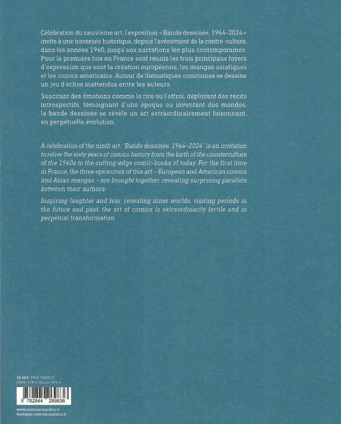 Véritable traversée de l'histoire moderne et contemporaine de la BD, l'exposition « Bande dessinée (1964-2024) », présentée au niveau 6, met en dialogue pour la première fois en France ses trois principaux foyers d'expression : la création européenne, les mangas asiatiques et les comics américains. En douze thématiques et par un jeu d'échos inattendus entre les auteurs, elle convoque les imaginaires de la bande dessinée, les émotions qu'elle suscite, ainsi que la diversité des techniques employées. L'aventure, le rêve, le rire, la science-fiction, l'architecture ou encore le récit intime sont autant de thématiques explorées. Parmi la centaine de personnalités incontournables rassemblées, une attention particulière est accordée aux femmes. Le catalogue s'attache à reproduire des planches originales, des dessins de couverture, des carnets, ainsi que des éléments de documentation, mettant en valeur la beauté du trait et la variété des techniques employées, au plus près du processus créatif. L'ensemble des textes est pensé pour offrir une approche accessible et ambitieuse sur un sujet aussi vaste et passionnant que le 9e art. Parmi eux, on peut noter notamment un entretien de Joe Sacco avec le critique Paul Gravett, ainsi qu'un essai de Tristan Garcia : « Bande dessinée et littérature : des sisters arts ». Saison La