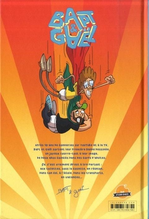 Après avoir conquis YouTube, les écrans de cinéma et de télévision, Bapt et Gaël s'attaquent à la BD. Le 9e Art en sortira-t-il indemne ? Rien n'est moins sûr ! Ce nouveau format est en effet l'occasion de débrider encore un peu plus leur créativité, s'il en était besoin. Outre une pléthore de gags inédits en droite ligne de leurs vidéos, ils cèdent directement à la mode des vieilles gloires de la bayday en nous proposant de découvrir « Les petits Bapt & Gaël » et autres joyeusetés éditoriales. Un incontournable pour tous les « likeurs » du célèbre duo !