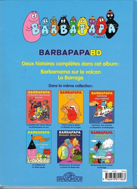 Chaque BD rassemble deux histoires pleines d'aventure et de rebondissements, pour captiver les enfants qui découvrent la lecture autonome avec Barbapapa. Escapades dans la nature Camping dans la forêt : Une petite excursion dans les grands parcs américains est l'occasion pour les Barbapapas de sensibiliser les barbabébés à l'écologie et au respect de la nature. Barbamama sur le volcan : C'est la fête des mères et les Barbapapas vont pique-niquer dans l'île du volcan, car Barbamama s'est passionnée pour la vulcanologie. Heureusement, car ses connaissances vont lui permettre de sauver la famille de l'explosion du terrible volcan !