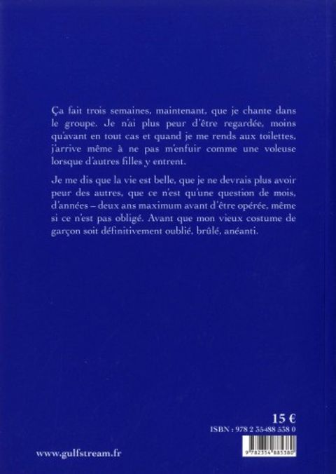 À table, j’ai préparé le terrain, j’ai agité mes bonnes notes et le couple gay de la classe, j’ai dit que c’était juste comme ça, pour voir, m’amuser. Ils ont hésité. Ils ont cédé. Parce qu’ils pensent exactement comme moi : je ne peux pas passer le reste de ma vie à me planquer. Et puis, comme le dit ma psy, le plus dur est passé. J’ai eu mal. J’ai voulu mourir. Mais j’ai survécu. Je me suis montrée plus forte qu’eux. Et je les ai laissés derrière moi, même si je ne pourrai jamais oublier ce qu’ils ont fait. Et voilà. Les dés sont jetés. Le destin est en marche. Et moi, j’ai beau me la jouer décontractée, je flippe complètement à l’idée de cette soirée.