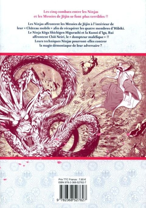 Les cinq combats entre les Ninjas et les Messies de Jôjin se font plus terribles !! Les Ninjas affrontent les Messies de Jôjin à l’intérieur de leur « Château mobile » afin de récupérer les quatre membres d’Hibiki. Le Ninja Kôga Shichigen Higurashi et la Kunoi d’Iga, Rui affrontent Chiô Neiri, le « dompteur maléfique » !! Leurs techniques Ninjas pourront-elles contrer la magie démoniaque de leur adversaire ?
