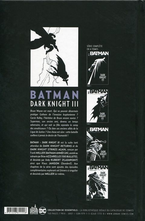 Bruce Wayne est mort. Qui va pouvoir désormais protéger Gotham de l'invasion kryptonienne ? Carrie Kelley, l'héritière de Bruce encore novice ? Superman, son ancien ami, devenu un temps adversaire, et qui voit sa fille rejoindre le camp des envahisseurs ? Ou bien ses anciens alliés de la Ligue de Justice ? Une chose est sûre : cette bataille scellera à jamais le destin de l'humanité ! Contenu : Dark Knight III #7-9.