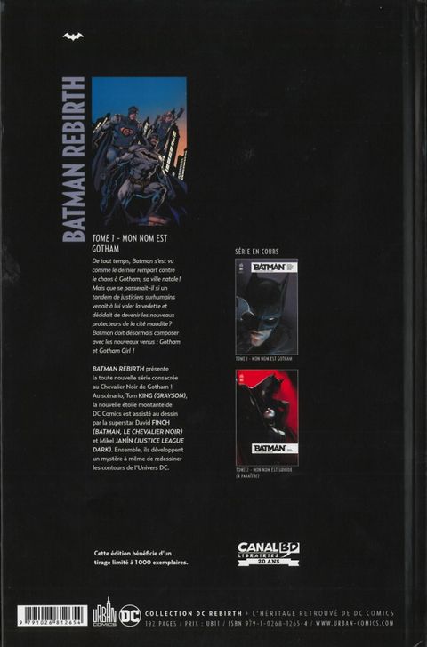 De tout temps, Batman s'est vu comme le dernier rempart contre le chaos à Gotham, sa ville natale ! Mais que se passerait-il si un tandem de justiciers surhumains venait à lui voler la vedette et décidait de devenir les nouveaux protecteurs de la cité maudite ? Batman doit désormais composer avec les nouveaux venus : Gotham et Gotham Girl ! Contenu : Batman Rebirth Vol.1: I am Gotham (Batman Rebirth #1, Batman #1-6)