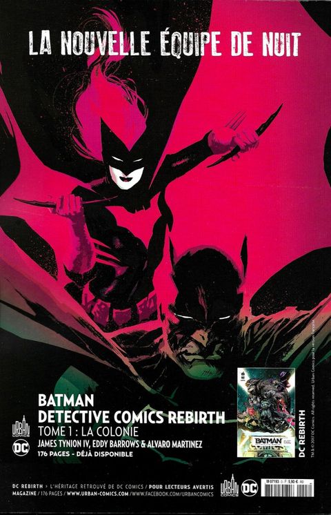 Les monstres attaquent Gotham ! Sommaire exceptionnel pour ce numéro, avec l'arrivée de la nouvelle série ALL-STAR BATMAN, Par Scott SNYDER, John ROMITA Jr. et Declan SHALVEY, dans laquelle le justicier doit rejoindre Gotham City et y ramener Double-Face en détention. En ville, Gotham Girl doit apprendre à vivre sans son frère, par Tom KING et Ivan REIS. L'équipe de Batwoman mène la lutte finale contre l'escouade du Colonel Jacob Kane, par James TYNION IV et Eddy BARROWS. Et Nightwing découvre les coulisses de la mission de Raptor, par Tim SEELEY et Javier FERNANDEZ. Enfin, début du cross-over « La Nuit des Monstres », rassemblant les séries BATMAN, DETECTIVE COMICS et NIGHTWING, tandis que les créatures façonnées par Hugo Strange sèment la destruction à Gotham. (Contient les épisodes US BATMAN #6 et #7, DETECTIVE COMICS #940 et #941, NIGHTWING #4 et #5, ALL-STAR BATMAN #1).