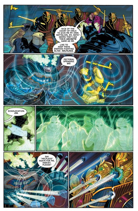 Batman organise son assaut sur Santa Prisca, mais comment réagira-t-il quand il verra que Catwoman se range aux côtés de Bane ? Par Tom KING et Mikel JANÍN. Le justicier nocturne lutte également contre le Syndicat des Victimes, mais ces derniers semblent avoir rallié Spoiler, l'une de ses plus jeunes alliées, à leur cause, par James TYNION IV, Eddie BARROWS et Alvaro MARTINEZ. Tandis que Batman escorte Double-Face et tente d'échapper aux chasseurs de primes, le jeune Duke Thomas affronte Monsieur Zsasz, par Scott SNYDER, John ROMITA Jr. et Declan Shalvey. Enfin, Dans le même temps, il doit escorter Double-Face alors qu'une prime est placée sur sa tête, par Scott SNYDER et John ROMITA Jr. De leur côté, Batwoman et son équipe affrontent le « Syndicat des Victimes », par James TYNION IV et Alvaro MARTINEZ. Enfin, sur les conseils de Superman, Nightwing entame une nouvelle vie et emménage dans la ville de Blüdhaven, par Tim SEELEY et Marcus TO. ( (Contient les épisodes US BATMAN #12 et #13, DETECTIVE COMICS #946 et #947, ALL STAR BATMAN #4, NIGHTWING #10 et #11)).