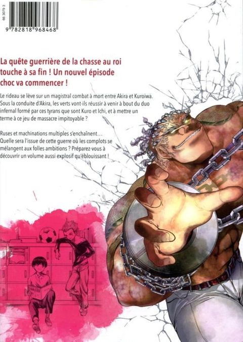 La quête guerrière de la chasse au roi touche à sa fin ! Un nouvel épisode de choc va commencer ! Le rideau se lève sur un magistral combat à mort entre Akira et Kuroiwa. Sous la conduite d'Akira, les verts vont-ils réussir à venir à bout du duo infernal formé par ces tyrans inhumains que sont Kuro et Ichi, et à mettre un terme à ce jeu de massacre impitoyable ? Ruses et machinations multiples s'enchaînent... Quelle sera l'issue de cette guerre où les complots se mélangent aux folles ambitions ?  Attention les yeux, ce volume 7 risque bien de vous éblouir !