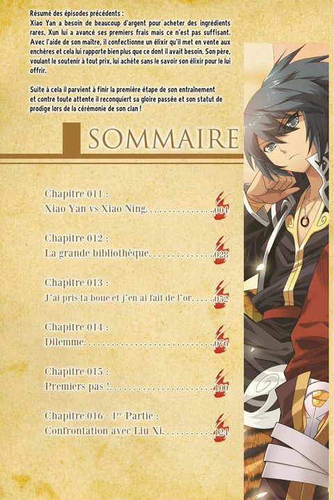 Après trois ans à trimer, Xiao Yan a enfin la possibilité de redorer son blason ! La cérémonie approche, courage ! En attendant, il sengage dans une voie bien mystérieuse. Et en parlant de mystère, Mystério refait surface ! Cependant, Ya Fei nest pas dupe. Va-t-elle trouver la vérité qui se cache derrière ce masque ? Zhiyin Manke explose tous les records cette année, avec des manhuas pour adolescents comme BTTH qui ont accumulé des millions de clics en ligne, avec une équipe délite composée du meilleur écrivain du web Tian Can Tu Dou, le dieu Zhou Hongbin et le célébrissime Ren Xiang. Ils ont réussi à créer un univers unique peuplé dalchimistes, de tao, darts martiaux, de sueur, de sang et le meilleur système de progression de personnages jamais inventé !