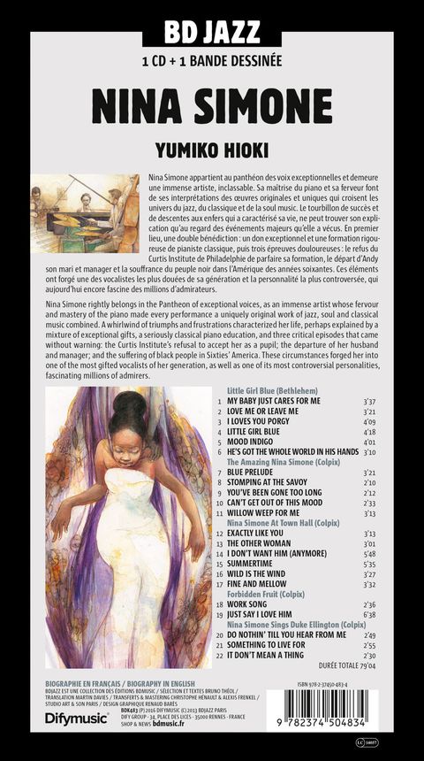 Nina Simone Appartient au Panthéon des Voix Exceptionnelles et Demeure une Immense Artiste, Inclassable. sa Maîtrise du Piano et sa Ferveur Font de ses Interprétations des Œuvres Originales et Uniques qui Croisent les Univers du Jazz, du Classique et de la Soul Music. le Tourbillon de Succès et de Descentes aux Enfers qui A Caractérisé sa Vie, ne Peut Trouver son Explication qu'au Regard des Evénements Majeurs qu'elle A Vécus.En Premier Lieu, une Double Bénédiction : un Don Exceptionnel et une Formation Rigoureuse de Pianiste Classique, Puis Trois Epreuves Douloureuses : le Refus du Curtis Institute de Philadelphie de Parfaire sa Formation, le Départ d'Andy son Mari et Manager et la Souffrance du Peuple Noir dans l'Amérique des Années 1960. ces Eléments Ont Forgé une des Vocalistes les Plus Douées de sa Génération et la Personnalité la Plus Controversée, qui Aujourd'Hui Encore Fascine des Millions D'Admirateurs.Edition Bilingue Français-Anglais.