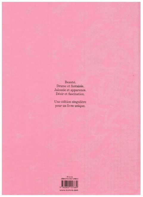Une intégrale luxueuse en bichromie, en édition limitée à 1900 exemplaires, du chef-d'oeuvre des Kerascoët et de Hubert. Pour traiter de la beauté et des malédictions qu'elle entraîne, les auteurs, Hubert et les Kerascoët, avaient une idée très précise de ce qu'ils souhaitaient rendre : un univers graphique aux confins de l'Art nouveau, des symbolistes anglais ou des estampes japonaises. L'intégrale des trois volumes, complétée d'un épilogue inédit en album, est présentée en bichromie, avec les couleurs que les auteurs ont utilisées pour réaliser leurs planches originales.
