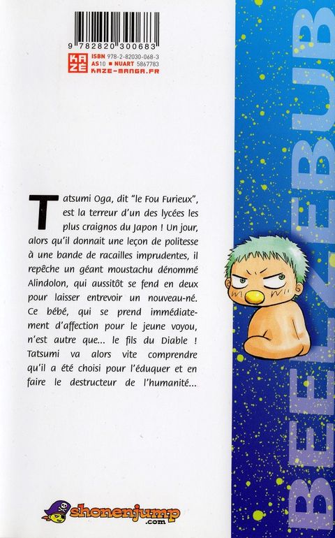 Tatsumi Oga, dit ""le Fou Furieux"", est la terreur d'un des lycées les plus craignos du Japon ! Un jour, alors qu'il donnait une leçon de politesse à une bande de racailles imprudentes, il repêche un géant moustachu dénommé Alindolon, qui aussitôt se fend en deux pour laisser entrevoir un nouveau-né. Ce bébé, qui se prend immédiatement d'affection pour le jeune voyou, n'est autre que... le fils du Diable ! Tatsumi va alors vite comprendre qu'il a été choisi pour l'éduquer et en faire le destructeur de l'humanité...