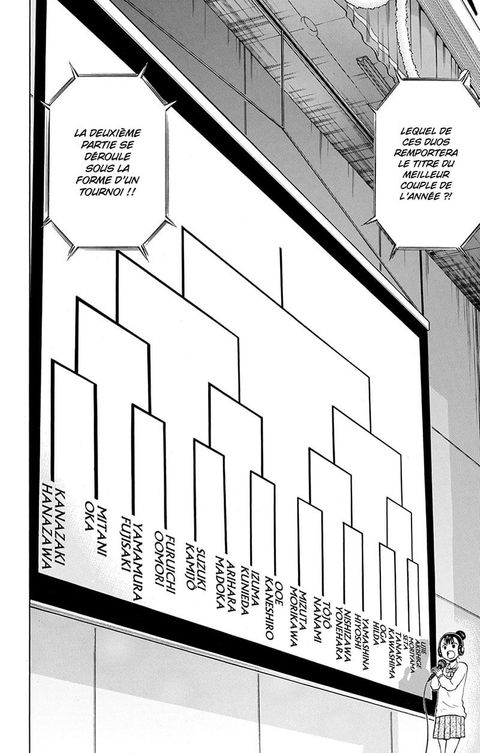 C'est Saint Noël Saint ! Les quinze couples sélectionnés au terme de l'étape éliminatoire pour participer au tournoi sont désormais connus : il est temps de passer aux choses sérieuses ! Dès la première manche, les binômes s'affrontent sur le ring dans des épreuves pour le moins embarrassantes allant du baiser indirect à la bataille assis sur les épaules, en passant par le pictionnari. Mais la bande d'Ishiyama n'est pas réputée pour respecter les règles et très vite les coups bas fusent ! Mais quand vient le tour d'Oga et de Hilda, ils se retrouvent face à des adversaires qui ne sont pas sans leur rappeler de vieilles connaissances.