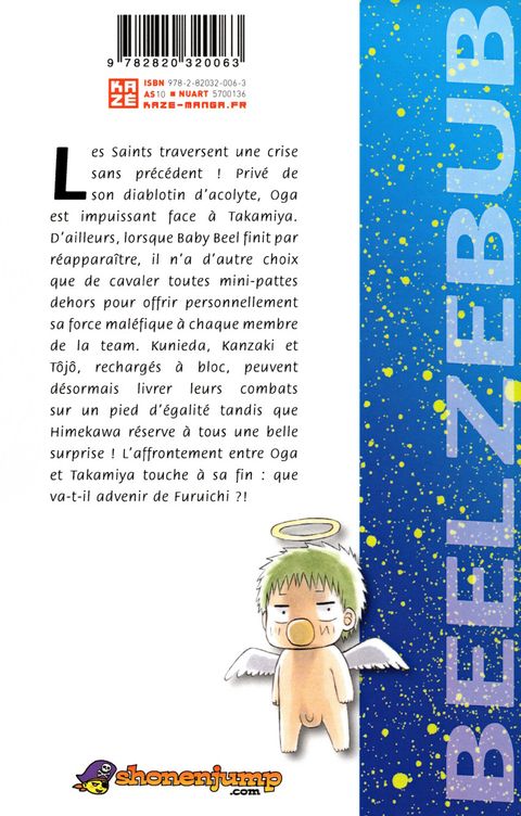 Les Saints traversent une crise sans précédent ! Privé de son diablotin d'acolyte, Oga est impuissant face à Takamiya. D'ailleurs, lorsque Baby Beel finit par réapparaître, il n'a d'autre choix que de cavaler toutes mini-pattes dehors pour offrir personnellement sa force maléfique à chaque membre de la team. Kunieda, Kanzaki et Tôjô, rechargés à bloc, peuvent désormais livrer leurs combats sur un pied d'égalité tandis que Himekawa réserve à tous une belle surprise ! L'affrontement entre Oga et Takamiya touche à sa fin : que va-t-il advenir de Furuichi ?!